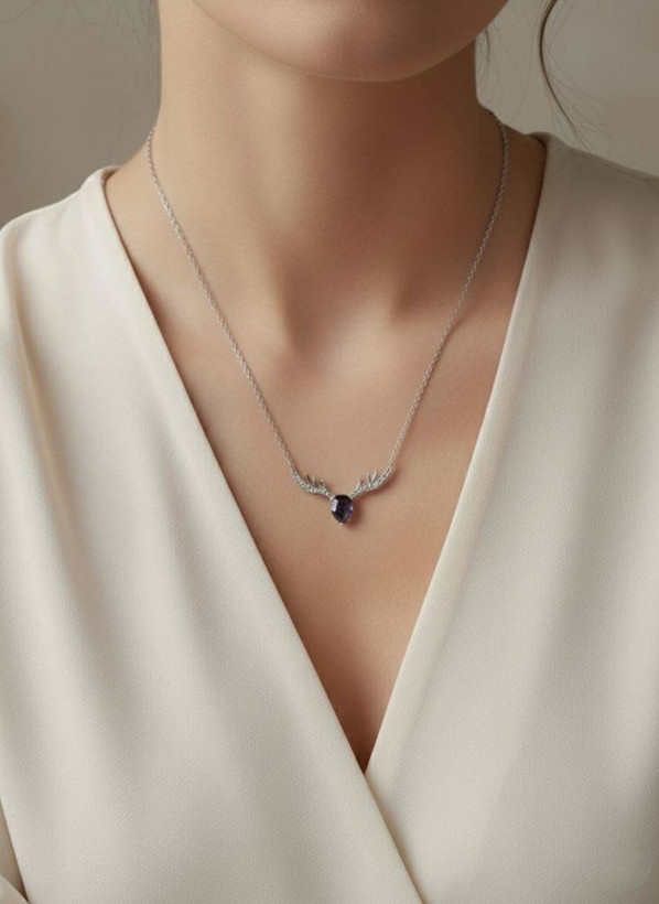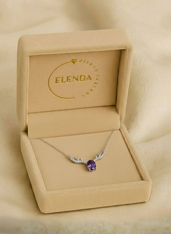 گردنبند زنانه مدل گوزن با سنگ سواروفسکی بنفش ترکیبی از لطافت، درخشش و اصالت ایتالیایی است. طراحی خاص و چشمنواز آن الهامگرفته از طبیعت و نماد استقامت و زیبایی است.