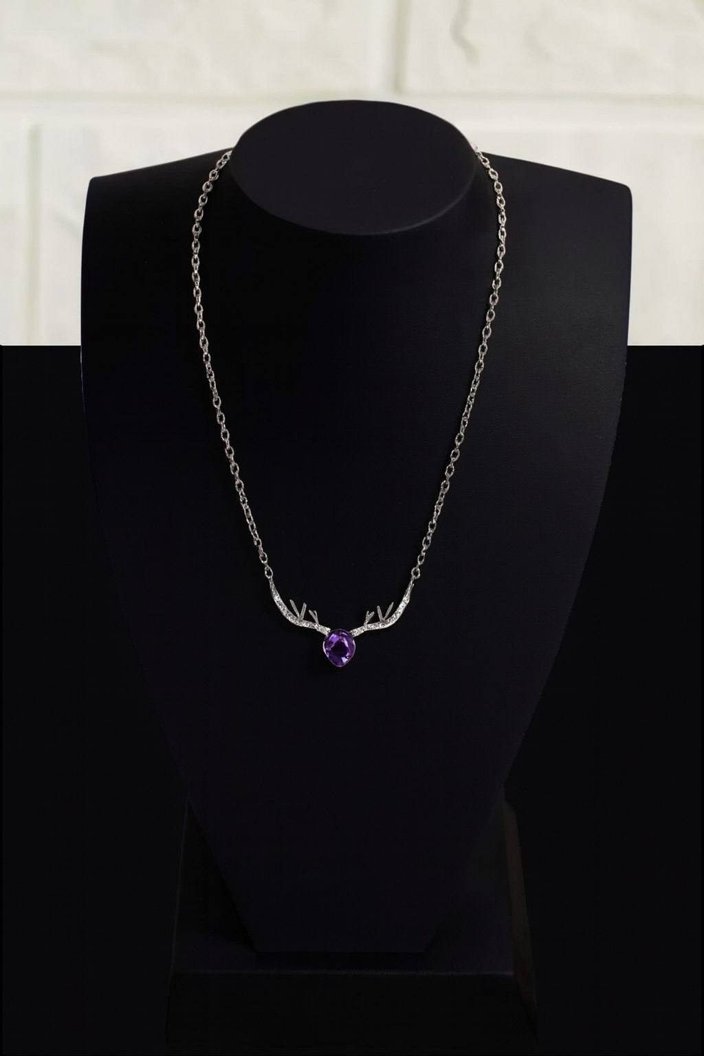 گردنبند زنانه گوزن نقره ایتالیایی با سنگ سواروفسکی بنفش ظرافت و درخشش خاص
