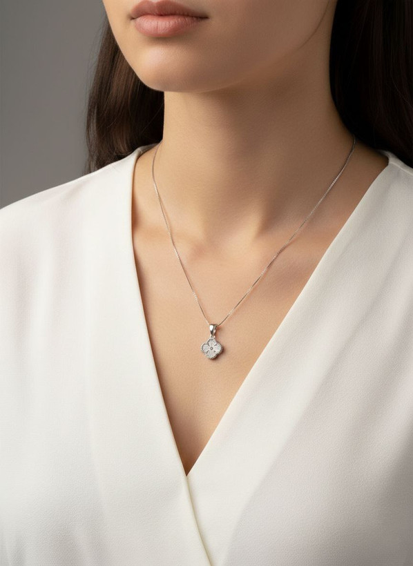 با گردنبند زنانه ونکلیف تمام نقره، استایل خودت رو به اوج ظرافت برسون.