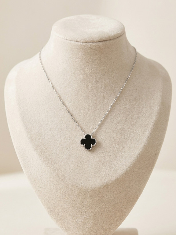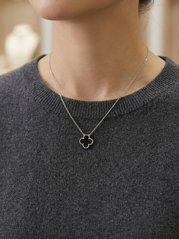 گردنبند زنانه ونکلیف مشکی سایز پلاک متوسط ترکیبی از طراحی لوکس و ظرافت ایتالیایی است که با هر استایلی درخشش خاصی ایجاد میکند.