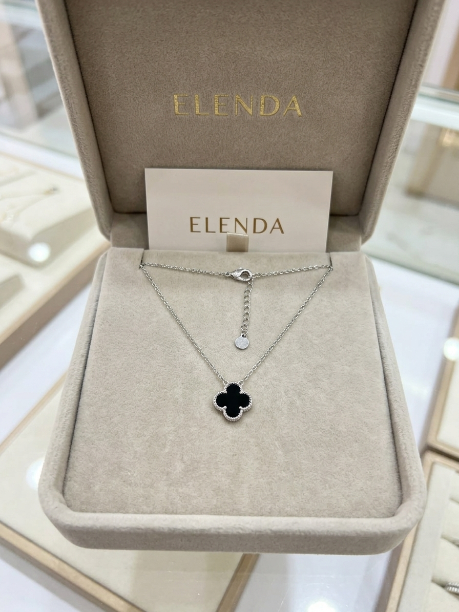 گردنبند زنانه نقره ایتالیایی مدل ونکلیف سنگ مشکی نقره ایتالیایی عیار 925
